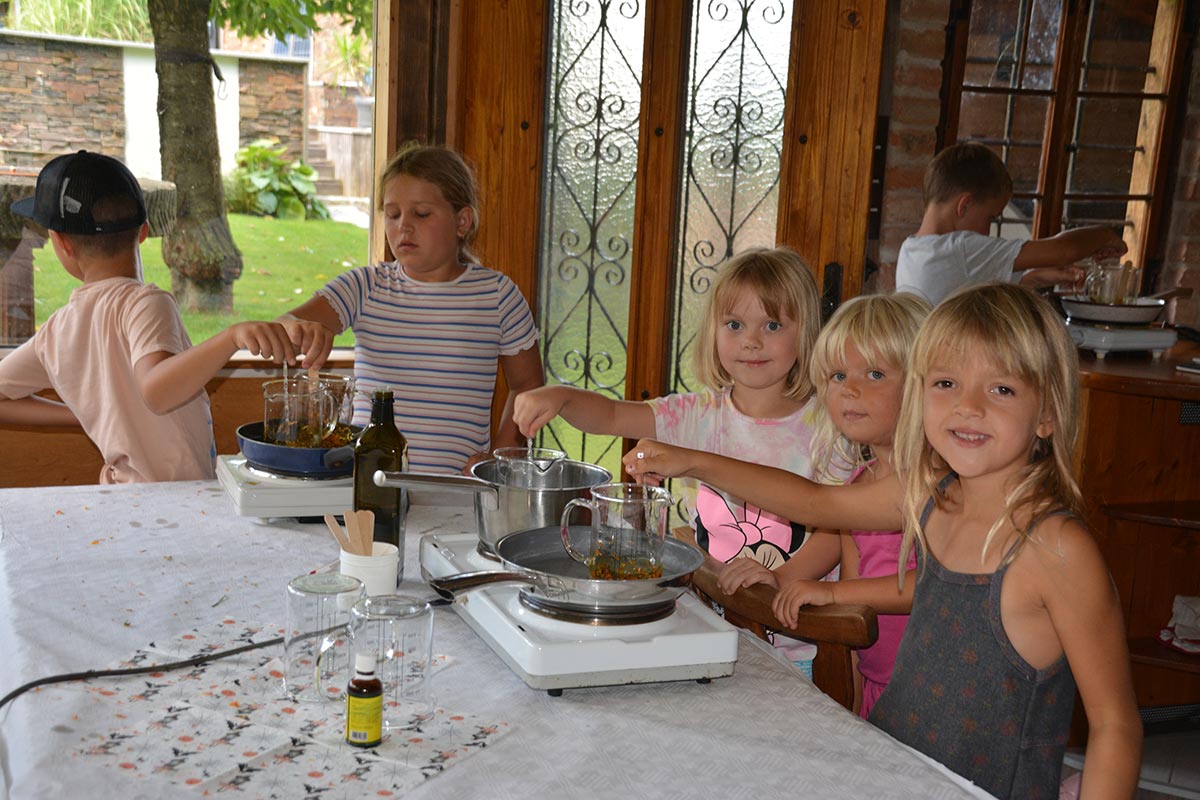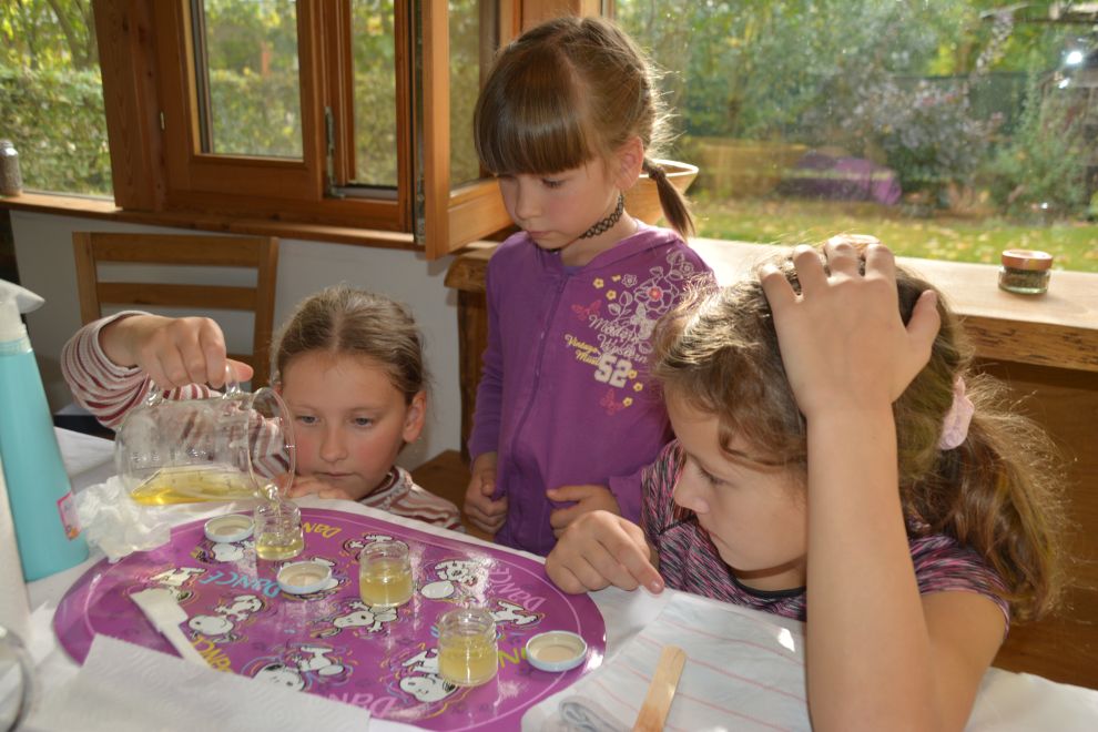 Eine große Ressource steckt in unseren Kinder, diese mit den Schätzen unserer Natur vertraut zu machen und einen respektvollen Umgang zu entwickeln. In Gruppenarbeiten entfalten sie ein Feingefühl für die Gewinnung, Verarbeitung und Anwendung der verschiedenen Rohstoffe. Durch das eigenständige Arbeiten in der Gemeinschaft, gewinnen die Kinder Vertrauen bei der Handhabung der Rohstoffe und können ihr Wissen zu Hause in die Tat umsetzen. Bereits die Kleinsten kreieren in meinen Workshops aus einfachen Mitteln, nachhaltige Produkte. Die selbst erzeugten Naturprodukt dienen zur Eigenanwendung oder werden mit großer Freude an Familienmitglieder verschenkt.